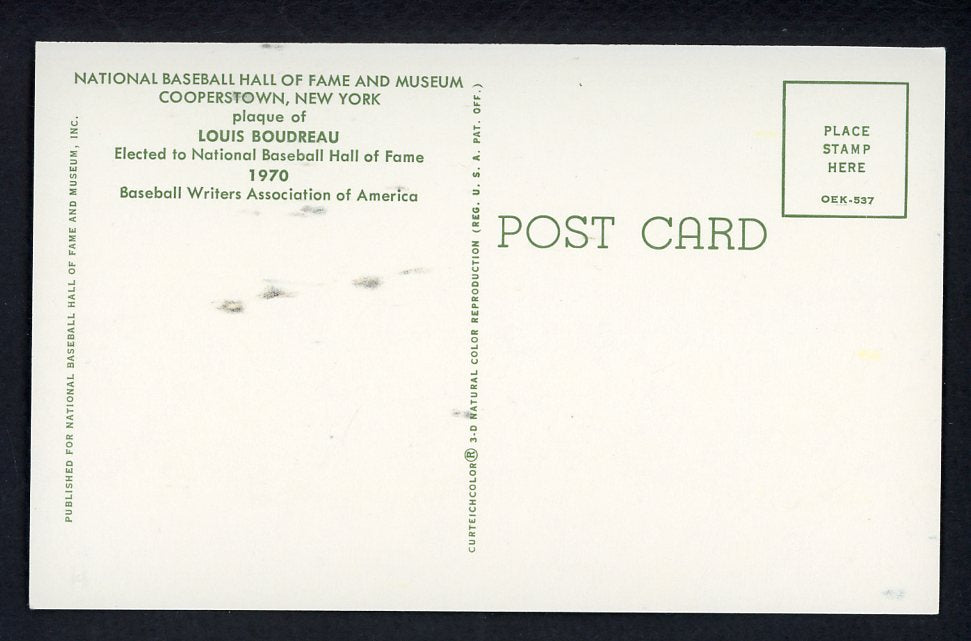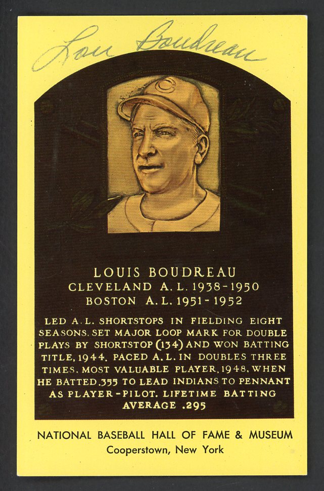 Yellow Hall of Fame Postcard Lou Boudreau Indians Signed Autographed