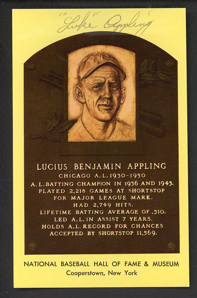 Yellow Hall of Fame Postcard Luke Appling White Sox Signed Autographed
