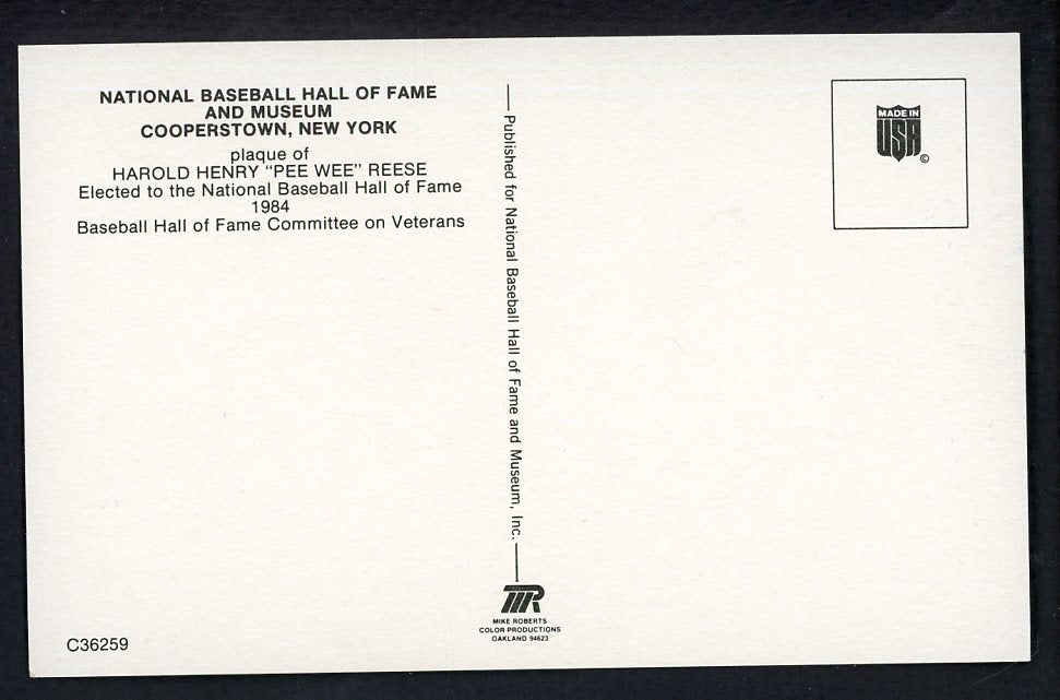 Yellow Hall of Fame Postcard Pee Wee Reese Dodgers Signed Autographed