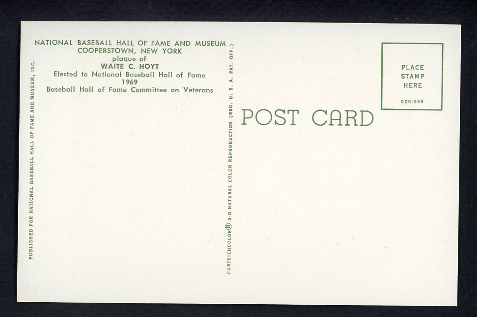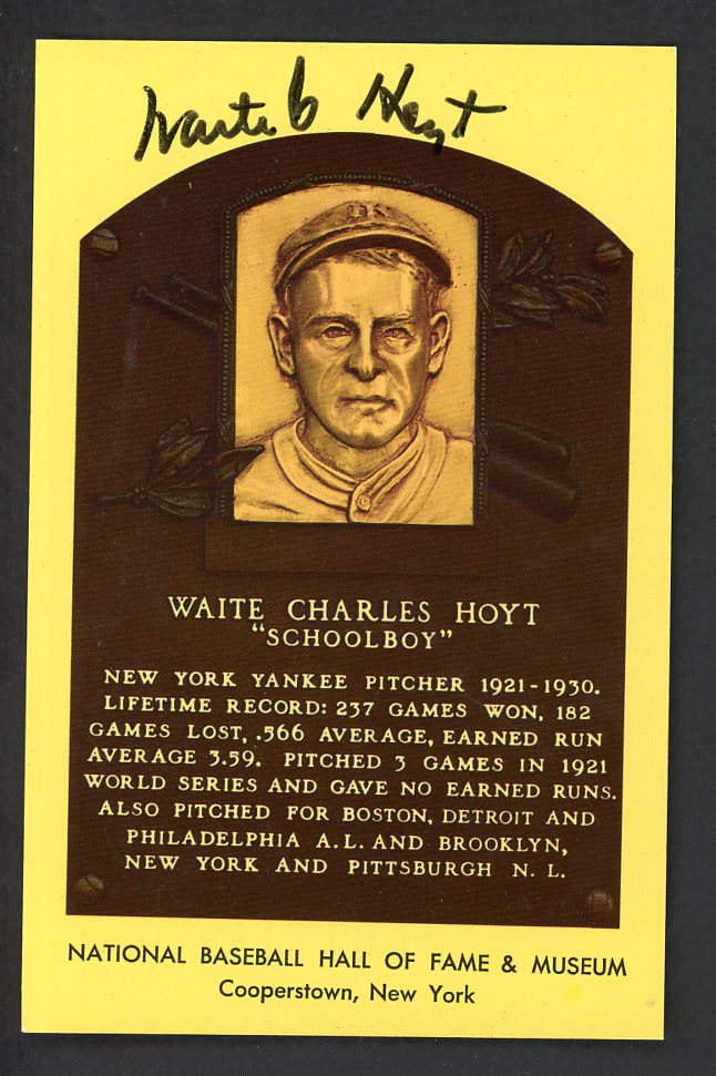 Yellow Hall of Fame Postcard Waite Hoyt Yankees Signed Autographed