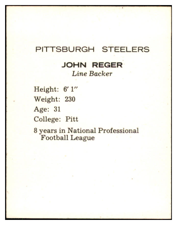 1962 Kahns Football John Reger Steelers NR-MT 537213