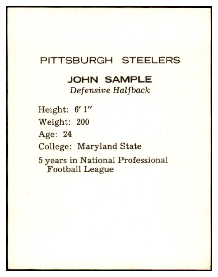 1962 Kahns Football Johnny Sample Steelers NR-MT 537215