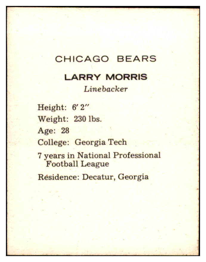 1962 Kahns Football Larry Morris Bears NR-MT 537207
