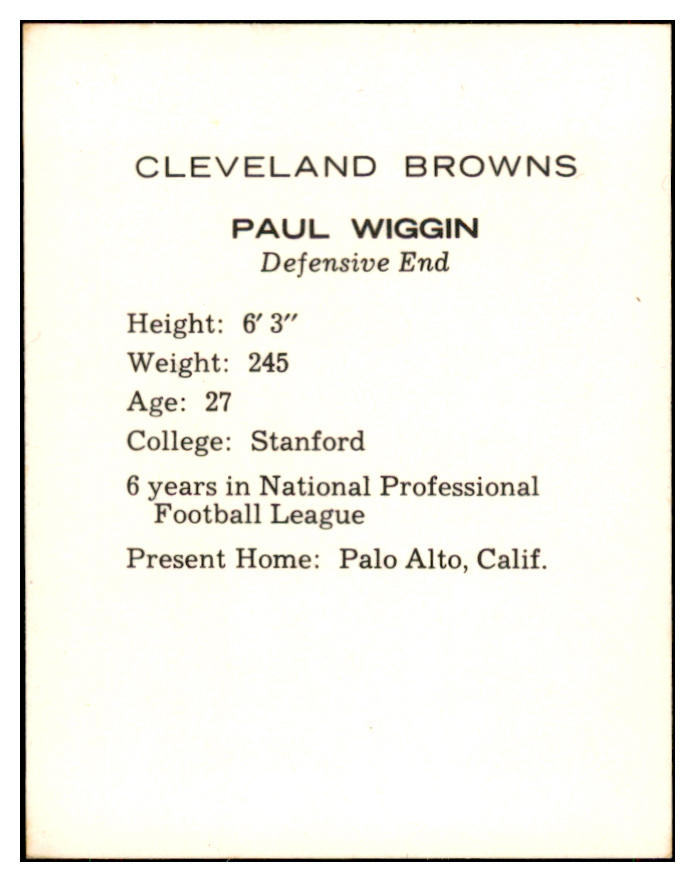 1962 Kahns Football Paul Wiggin Browns NR-MT 537218