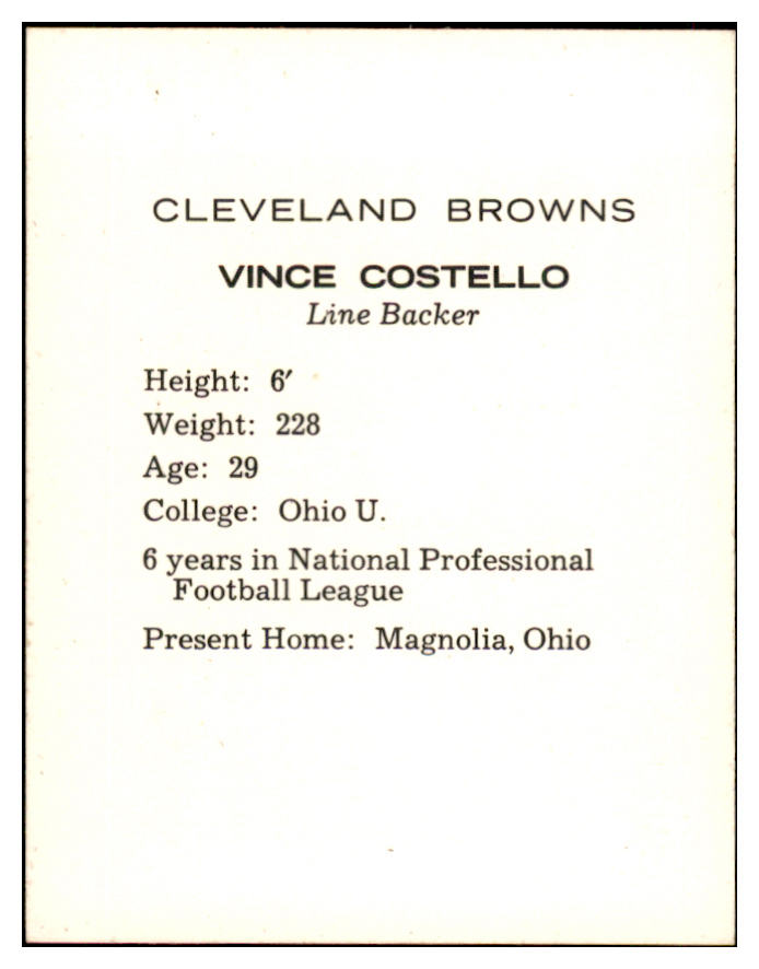 1962 Kahns Football Vince Costello Browns NR-MT 537196