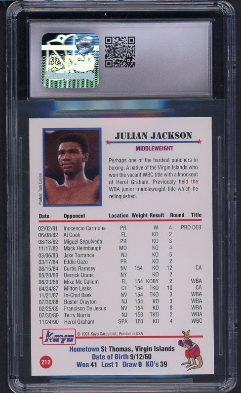 1991 Kayo #212 Julian Jackson Boxer CSG 9.5 GEM MINT 534020