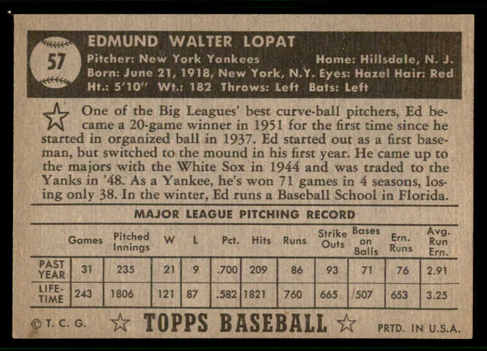 1952 Topps Baseball #057 Eddie Lopat Yankees EX+/EX-MT Black 541868