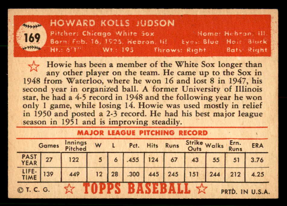 1952 Topps Baseball #169 Howie Judson White Sox EX-MT 544243