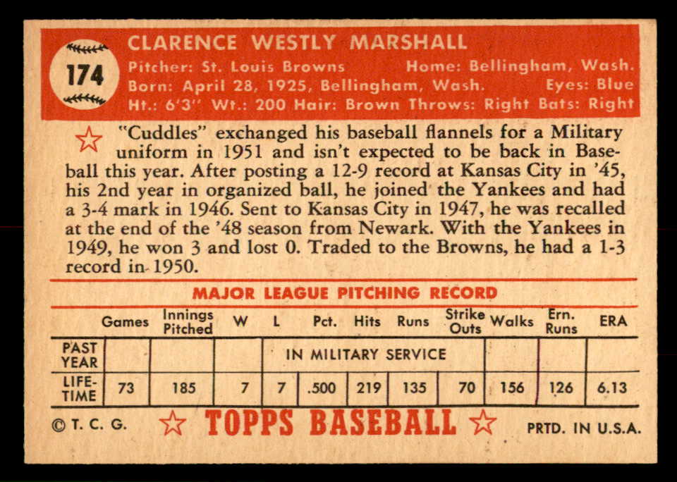1952 Topps Baseball #174 Clarence Marshall Browns EX-MT 544248