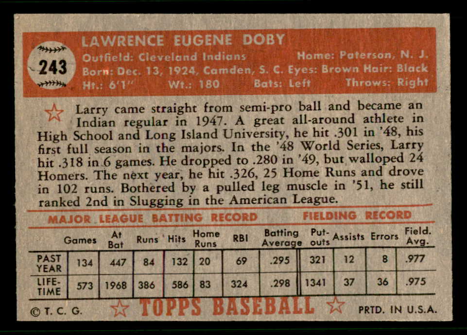 1952 Topps Baseball #243 Larry Doby Indians VG-EX 541802