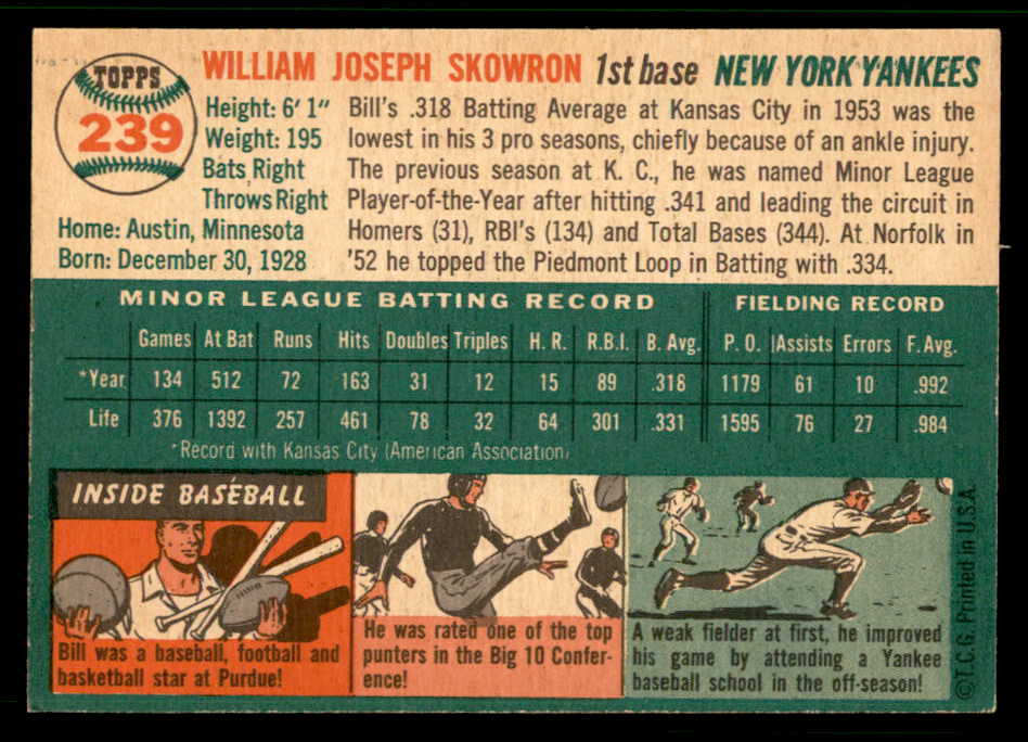 1954 Topps Baseball #239 Bill Skowron Yankees EX-MT 541873