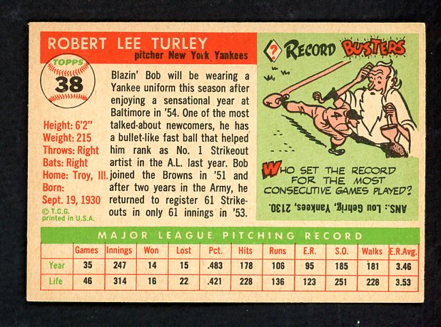 1955 Topps Baseball #038 Bob Turley Yankees EX-MT 541982