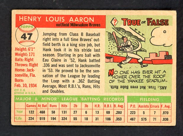 1955 Topps Baseball #047 Hank Aaron Braves VG 538694