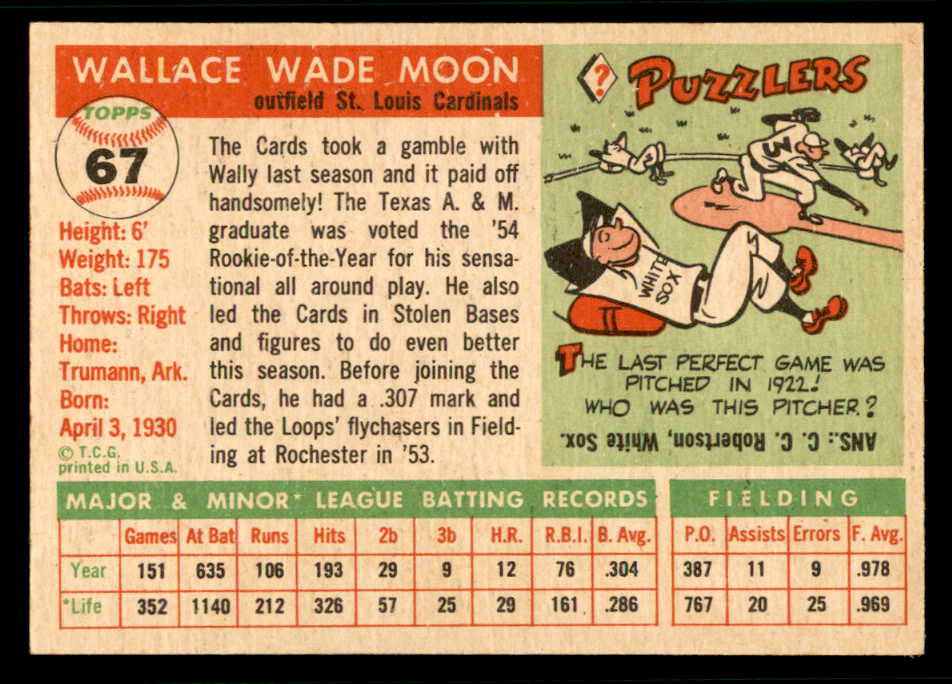 1955 Topps Baseball #067 Wally Moon Cardinals EX-MT 541993