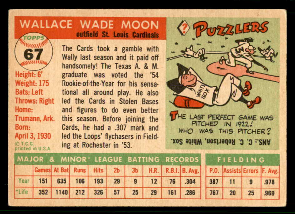 1955 Topps Baseball #067 Wally Moon Cardinals VG-EX 542398