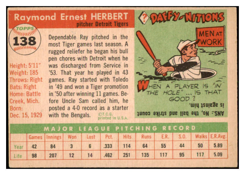 1955 Topps Baseball #138 Ray Herbert Tigers EX-MT 528149