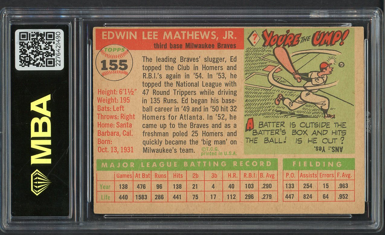 1955 Topps Baseball #155 Eddie Mathews Braves MBA 4 VG-EX 546850