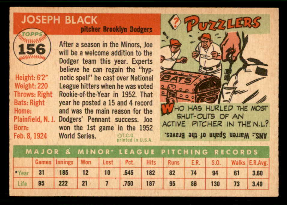1955 Topps Baseball #156 Joe Black Dodgers EX-MT 541879