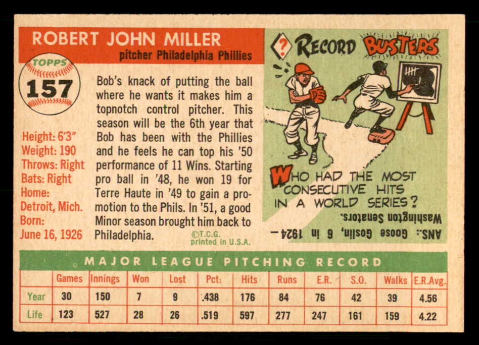 1955 Topps Baseball #157 Bob Miller Phillies EX-MT 539528