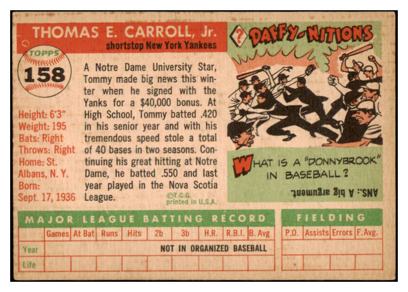 1955 Topps Baseball #158 Tommy Carroll Yankees EX 528049