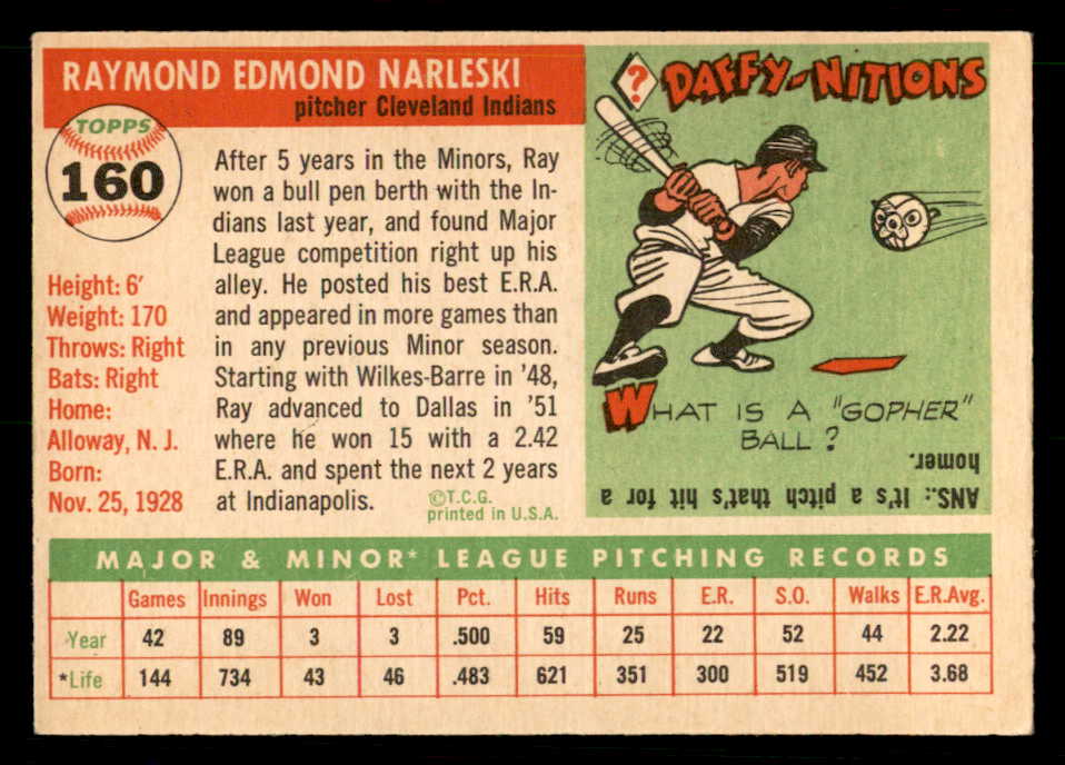 1955 Topps Baseball #160 Ray Narleski Indians EX 539538