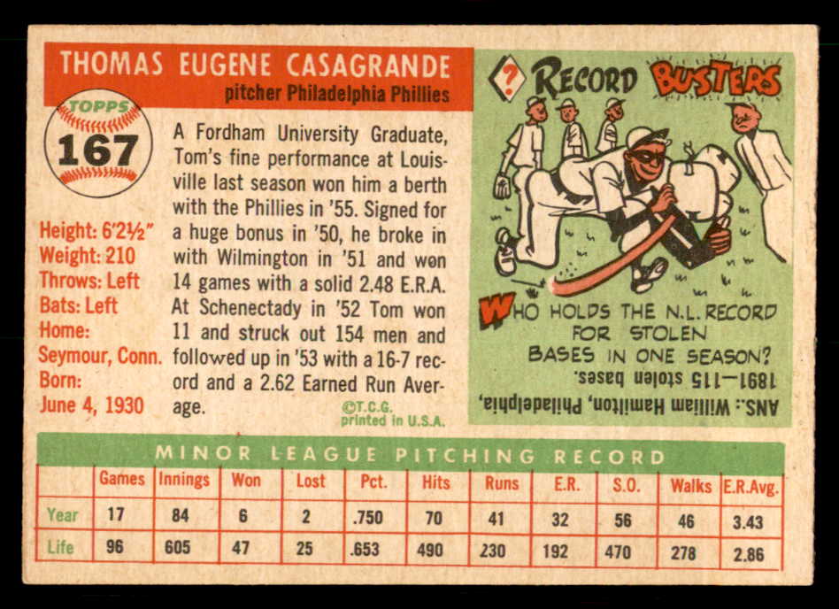 1955 Topps Baseball #167 Tom Casagrande Phillies EX-MT 539524