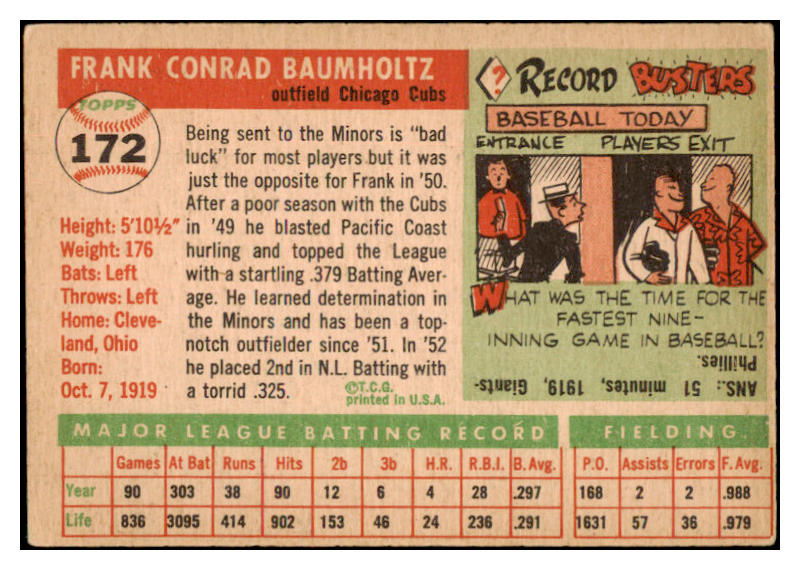 1955 Topps Baseball #172 Frank Baumholtz Cubs VG-EX 528039