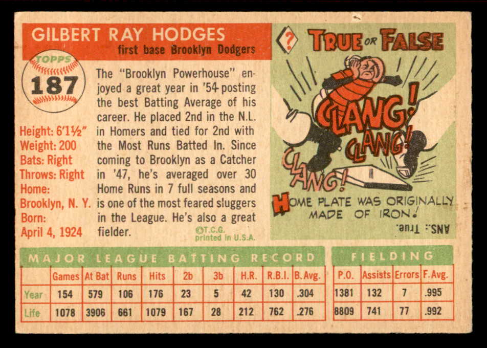 1955 Topps Baseball #187 Gil Hodges Dodgers EX-MT 539038