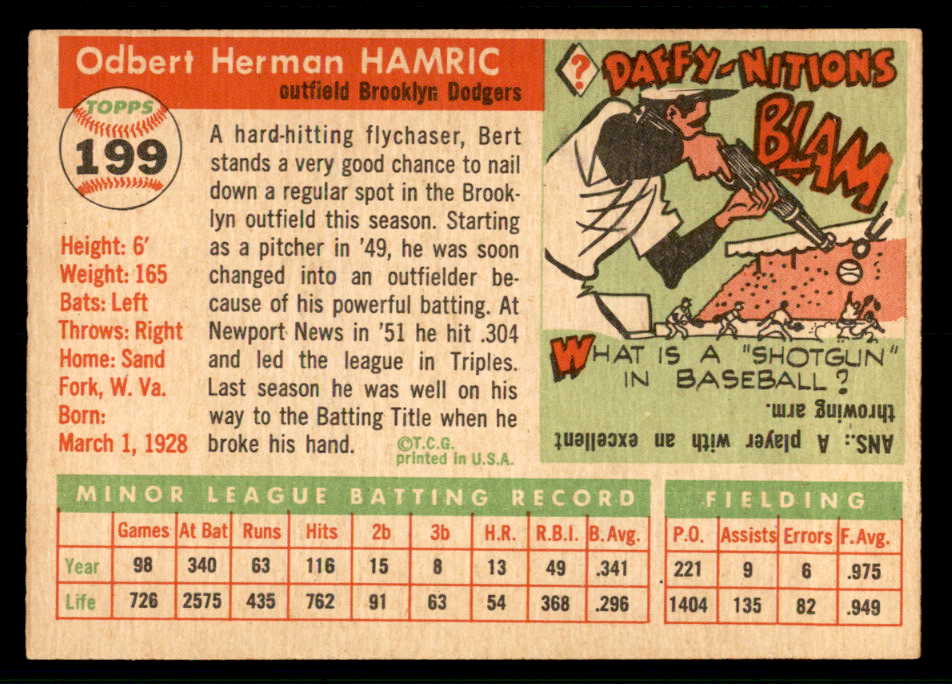 1955 Topps Baseball #199 Bert Hamric Dodgers EX-MT 541225