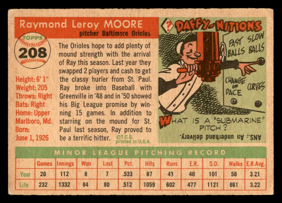 1955 Topps Baseball #208 Ray Moore Orioles VG-EX 547280