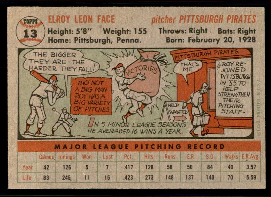 1956 Topps Baseball #013 Roy Face Pirates EX-MT Gray 543251