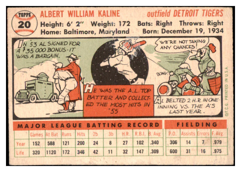 1956 Topps Baseball #020 Al Kaline Tigers EX-MT White 529270