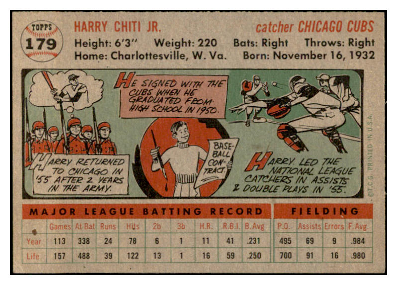1956 Topps Baseball #179 Harry Chiti Cubs EX-MT Gray 535205