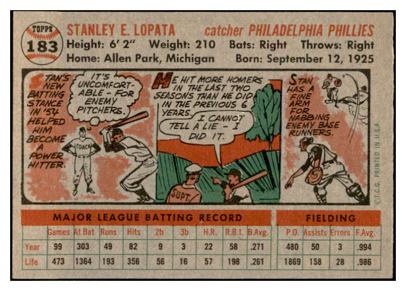 1956 Topps Baseball #183 Stan Lopata Phillies EX-MT 535209