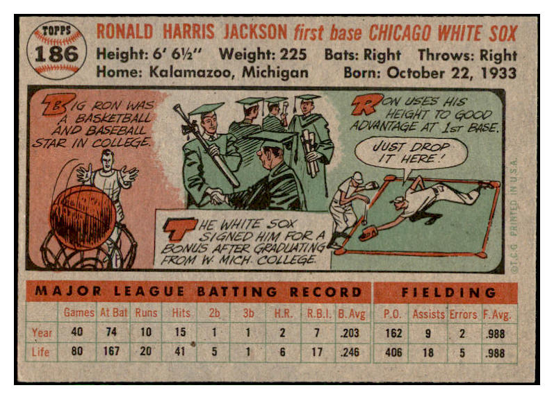 1956 Topps Baseball #186 Ron Jackson White Sox EX-MT 535214