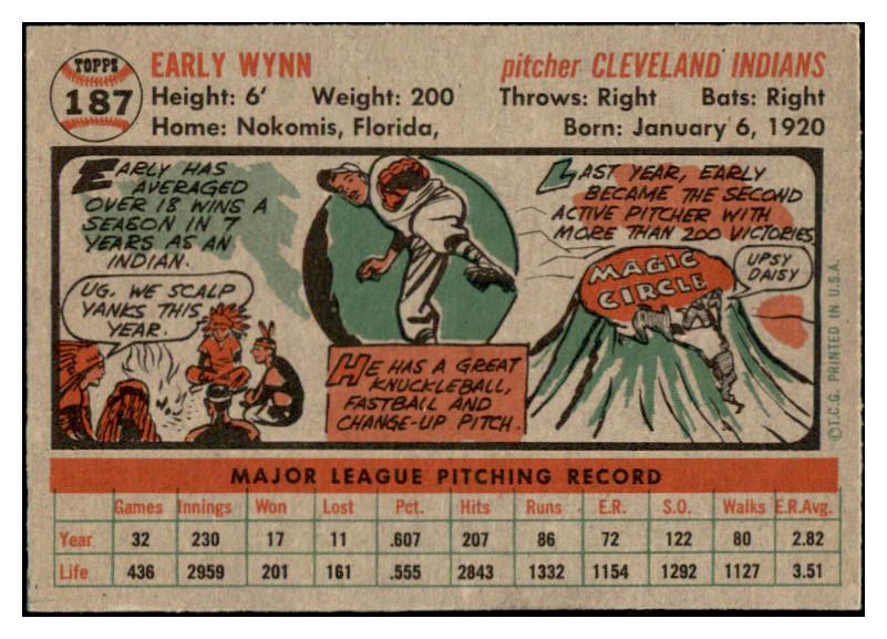 1956 Topps Baseball #187 Early Wynn Indians EX-MT 529695