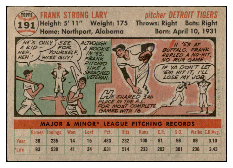 1956 Topps Baseball #191 Frank Lary Tigers EX-MT 535217