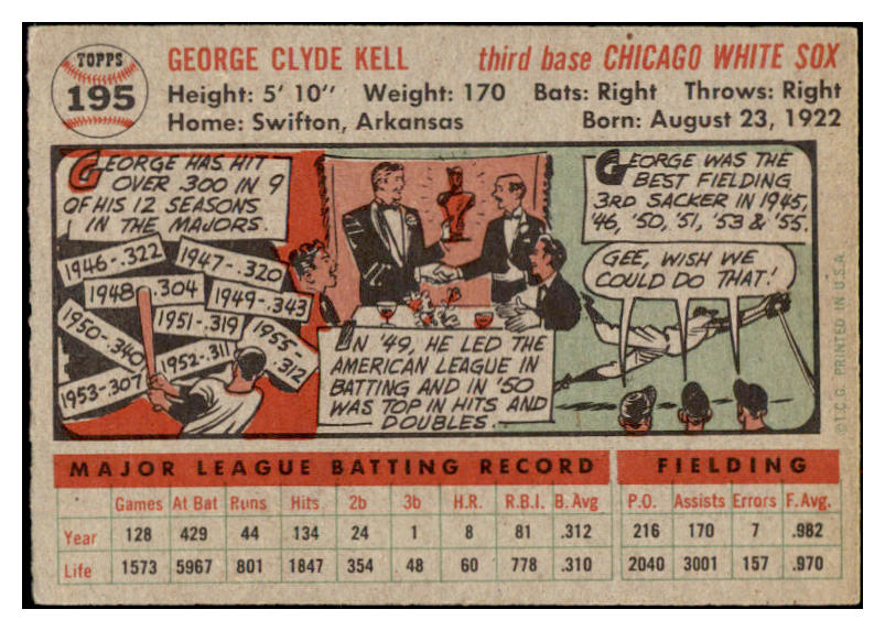 1956 Topps Baseball #195 George Kell White Sox EX-MT 529698