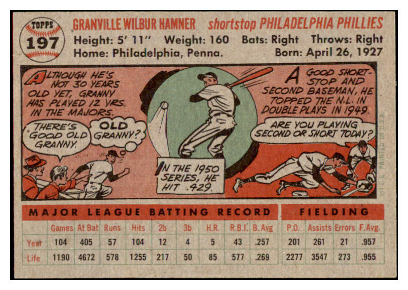 1956 Topps Baseball #197 Granny Hamner Phillies EX-MT 528439