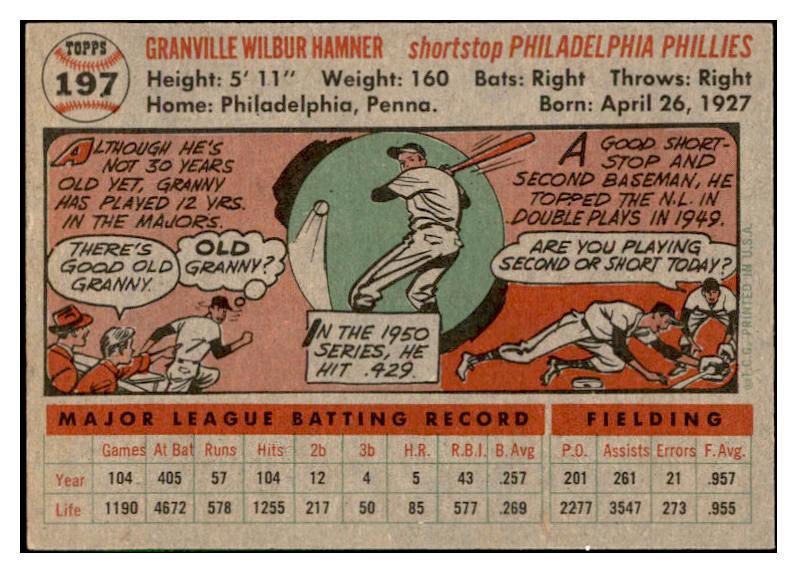 1956 Topps Baseball #197 Granny Hamner Phillies EX-MT 535222