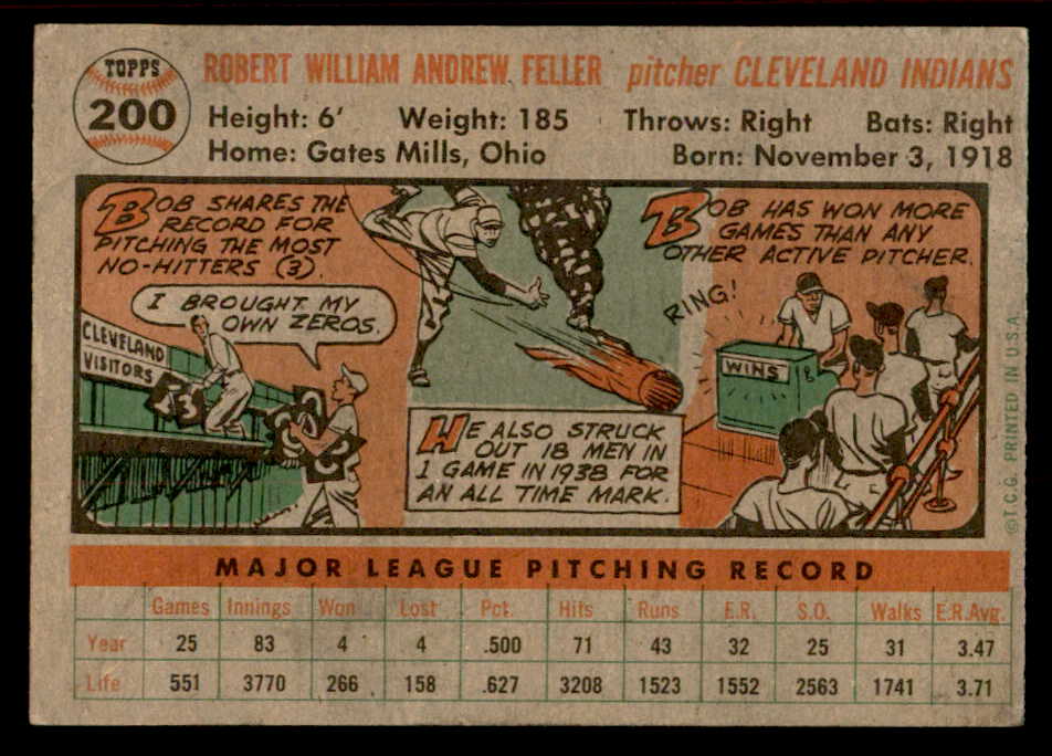 1956 Topps Baseball #200 Bob Feller Indians VG-EX 539079