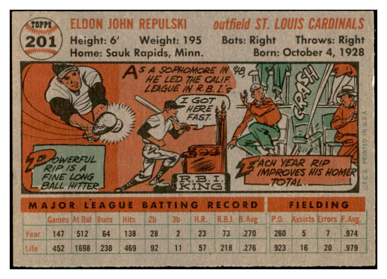 1956 Topps Baseball #201 Rip Repulski Cardinals EX-MT 535227