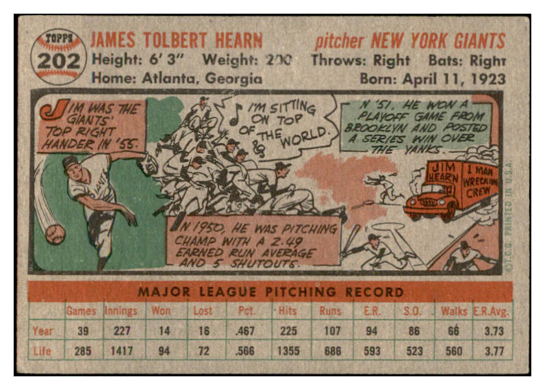 1956 Topps Baseball #202 Jim Hearn Giants EX-MT 535228