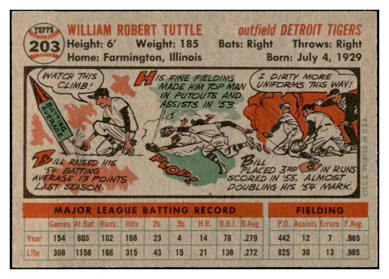 1956 Topps Baseball #203 Bill Tuttle Tigers EX-MT 535229