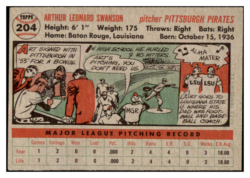 1956 Topps Baseball #204 Art Swanson Pirates EX-MT 528171