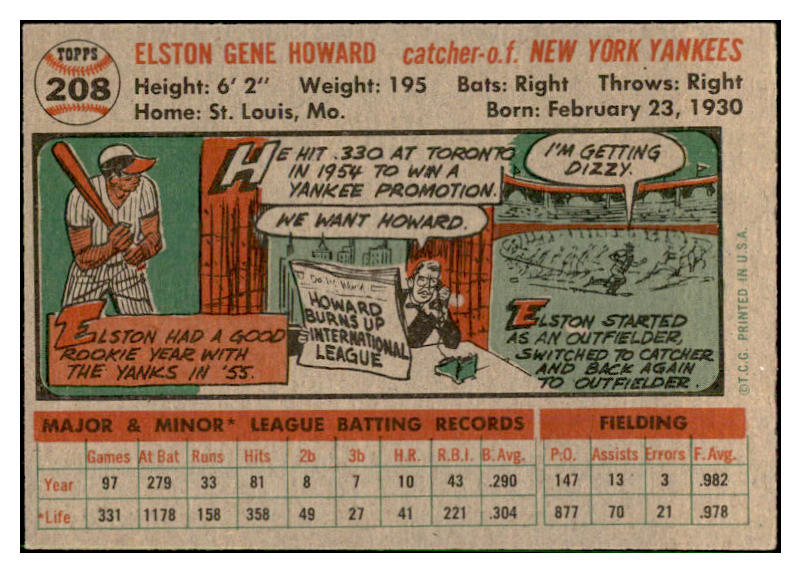1956 Topps Baseball #208 Elston Howard Yankees EX-MT 535236