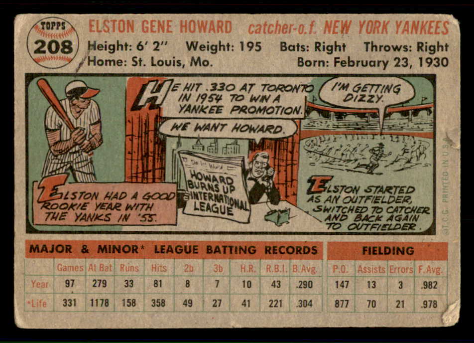 1956 Topps Baseball #208 Elston Howard Yankees Fair 543247