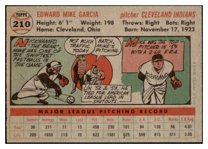 1956 Topps Baseball #210 Mike Garcia Indians EX-MT 528447