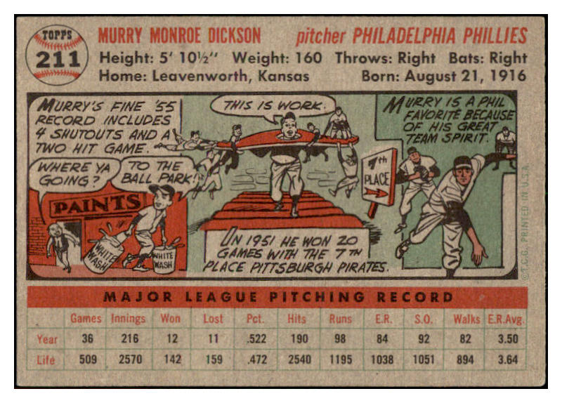 1956 Topps Baseball #211 Murry Dickson Phillies EX-MT 528174