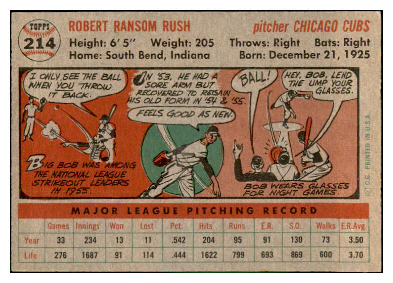 1956 Topps Baseball #214 Bob Rush Cubs EX-MT 535243